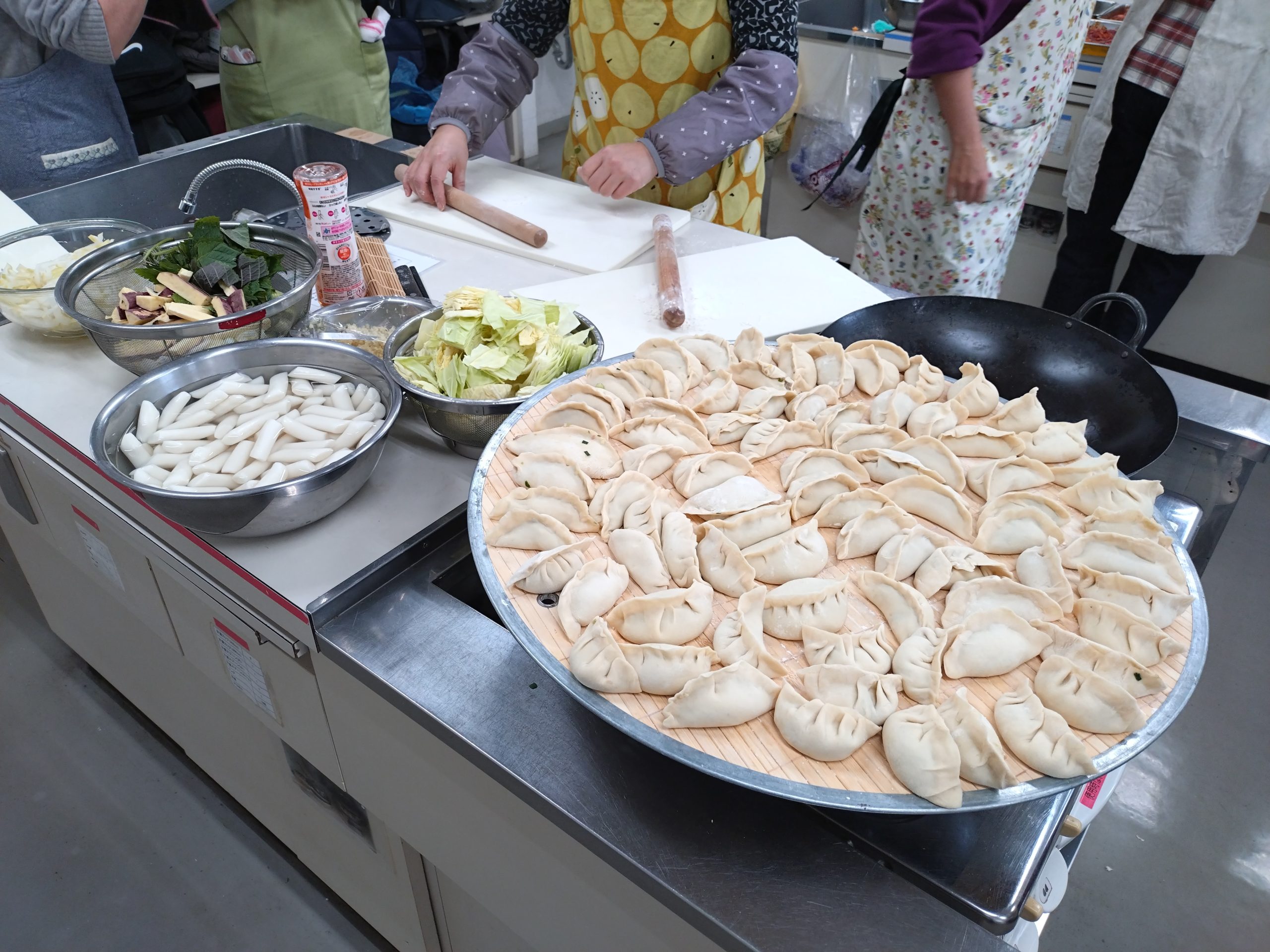 私は普段から家でよく料理をするので、快く引き受け、みんなが大好きな餃子を作ることにしました。このイベントは大変人気で、なんと21人も参加しました。