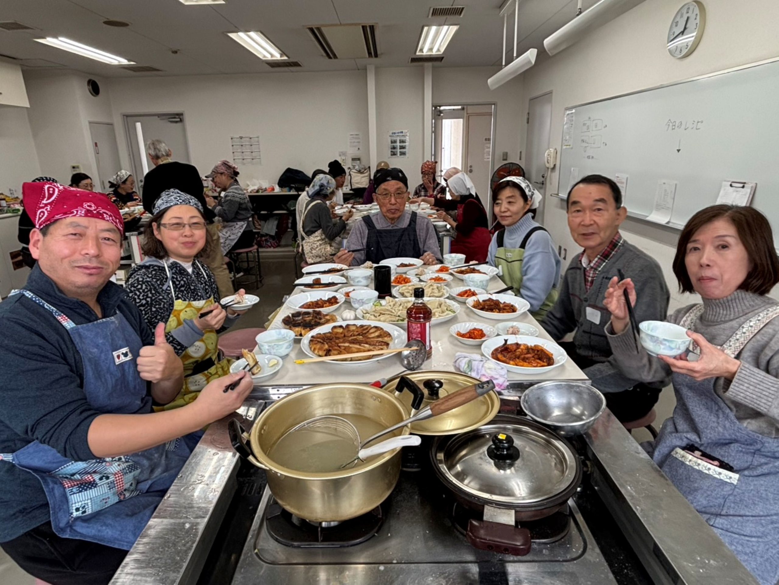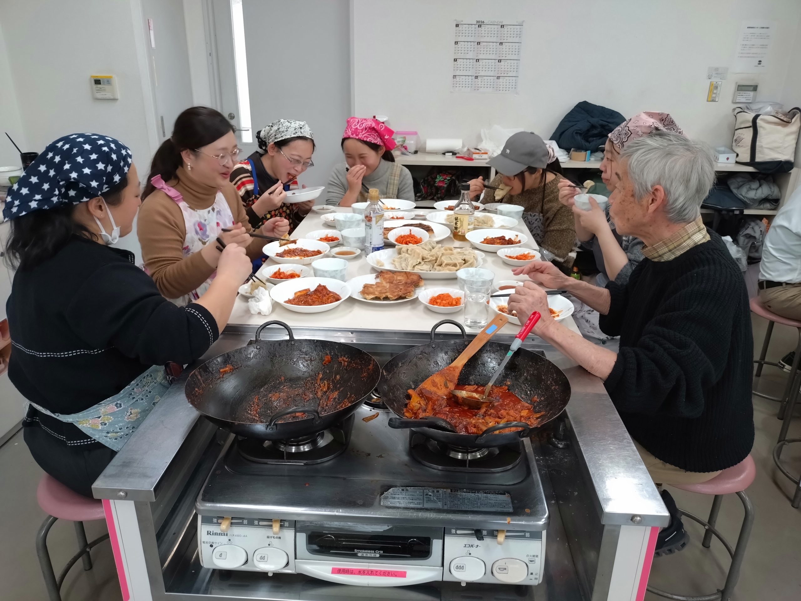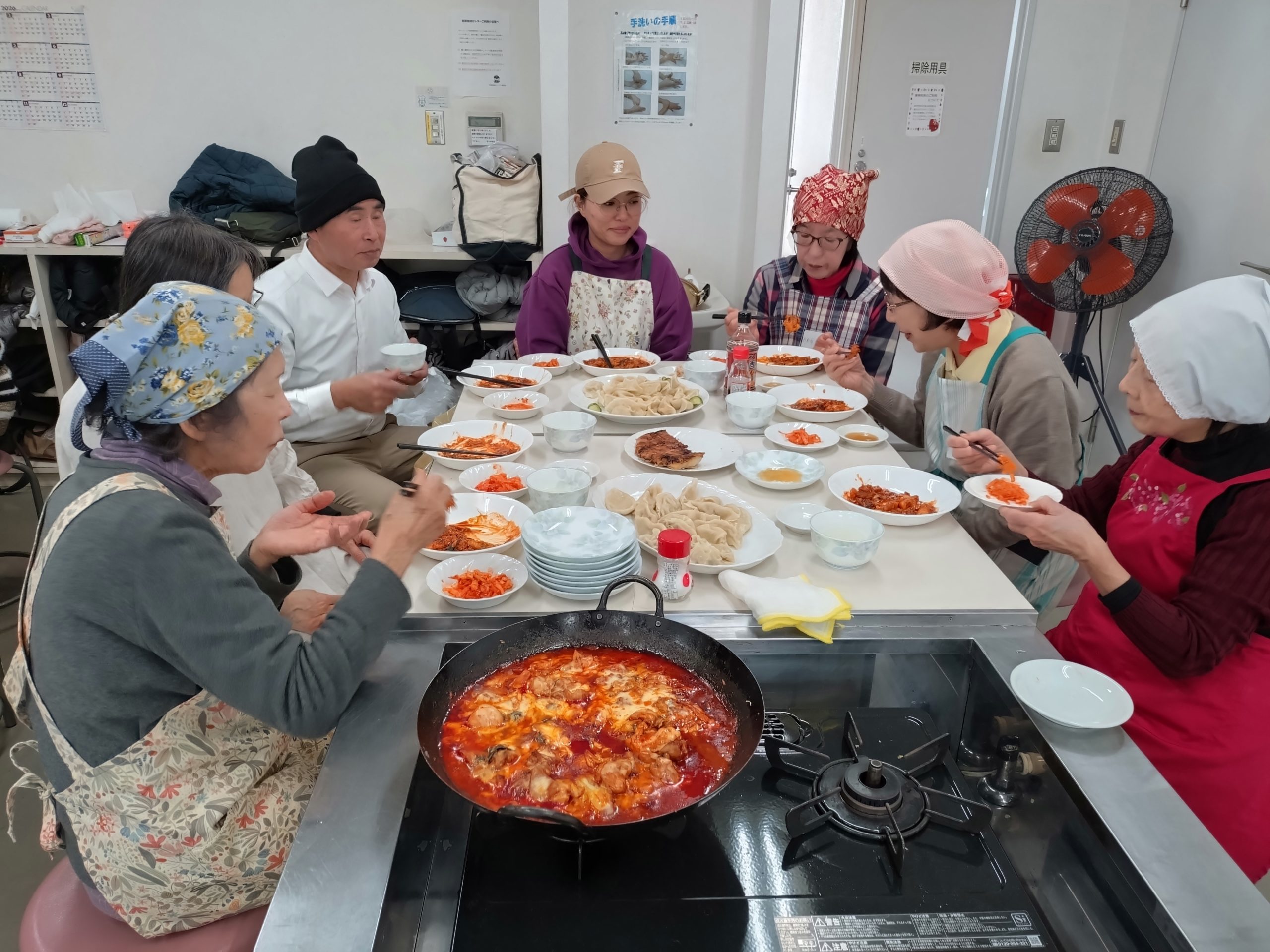 当日は皆さんがとても積極的に参加してくださり、作業は順調に進みました。皆で作りながらおしゃべりをして、とても楽しかったです。食べるのが大好きな方が多く、食べながらまたお話しして、本当に楽しい一日でした。