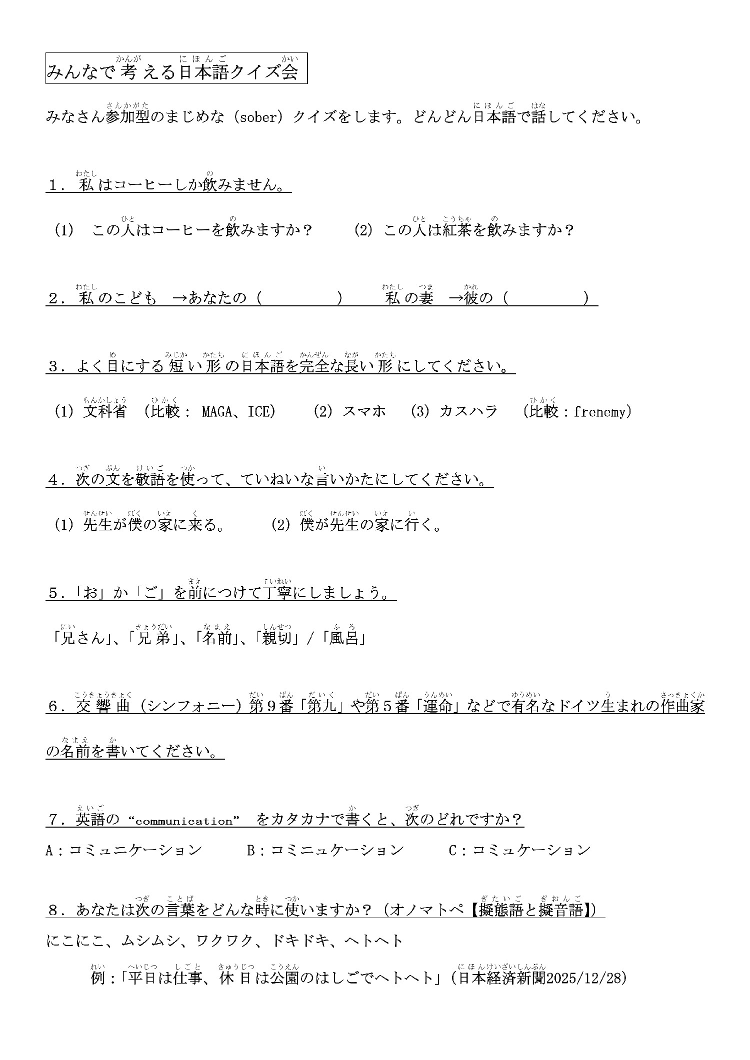 水曜日クラス(みんなで考える日本語クイズ会)