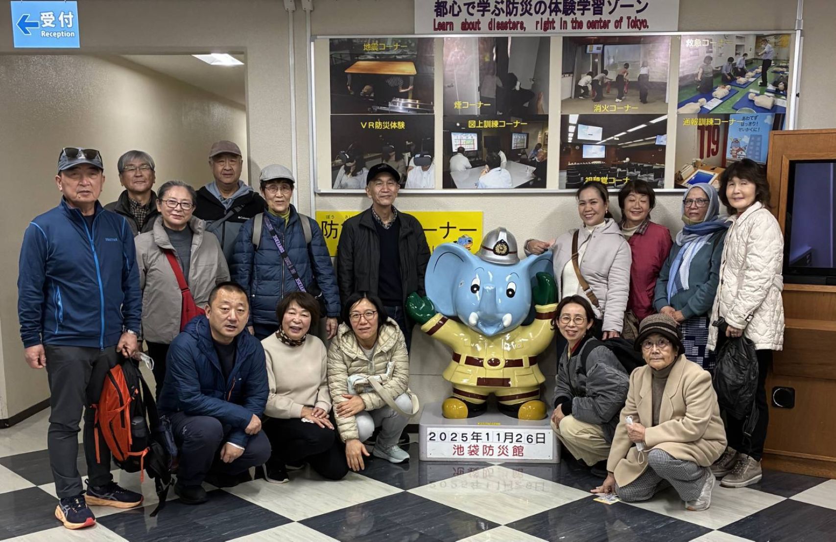 お天気にも恵まれた11月26日、月曜日クラスでは秋のお出かけイベントを行いました。学習者5名とボランティア10名の計15名で池袋防災館、マレーシア料理のランチ、そして自由学園明日館へ。